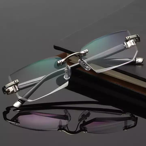 Hợp kim quang học kim cương cắt tỉa cắt không có vành kính khung với Gradient grey Tint Plano ống kính theo toa